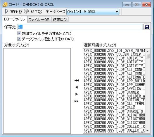 「DB→ファイル」タブでは、指定したテーブルをSQL*Loaderで使用するファイルに出力します。今回は、OBのデータ生成を使って10万件のデータを作成し、そのデータをファイルに出力します。