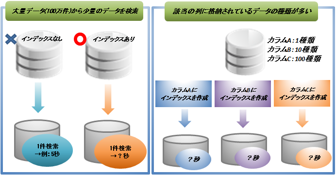 ・データ種類が少ない項目よりも、多い項目にインデックスを作成する方が効果が高い