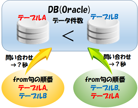 テーブルを結合するようなSQLを実行する際、パフォーマンスを考慮しfrom句で指定するテーブルの順番を考え直すといった場面があるかと思います。