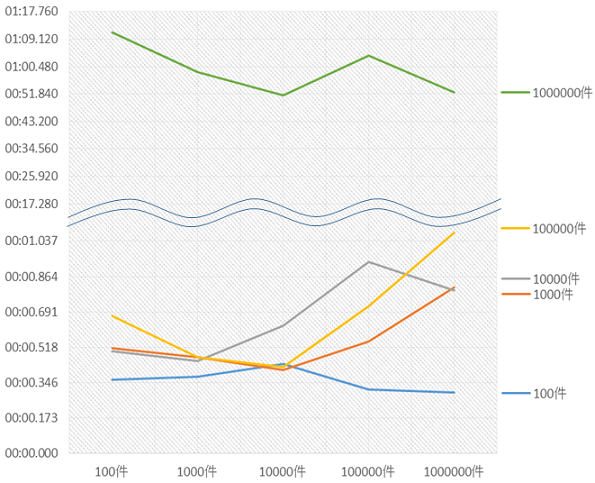 | 100000件 | 01:11.197 | 00:58.674 | 00:51.498 | 01:04.004 | 00:52.308 | |
