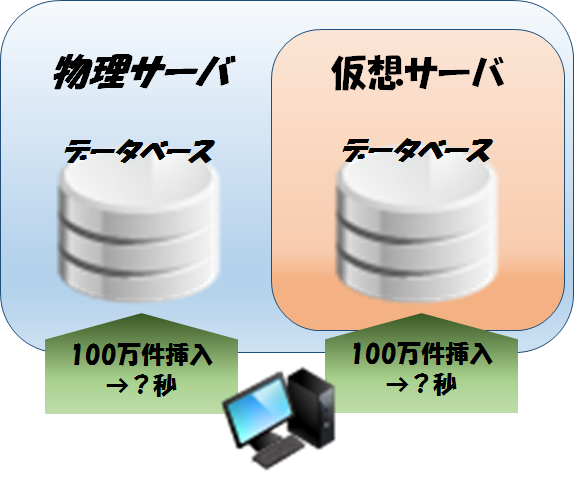 ・データの挿入処理では、物理環境より仮想環境の方か性能が劣化する