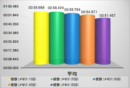 | 仮想(メモリ:4GB) | 00:56.795 | 00:55.812 | 00:53.280 | 00:52.750 | 00:56.218 | 00:54.971 |